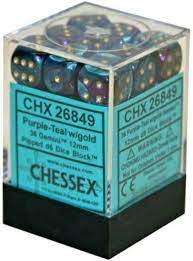 Chessex Gemini Purple-Teal/Gold 12mm D6 Dice Block (36)
