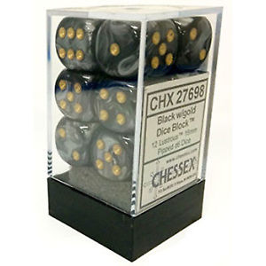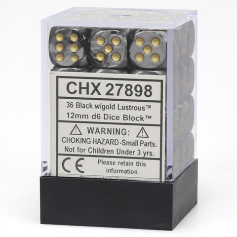 Chessex Lustrous: 12mm D6 Black/Gold 36 ct