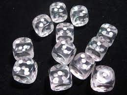 Chessex Translucent 16mm D6 Clear With White 12 ct