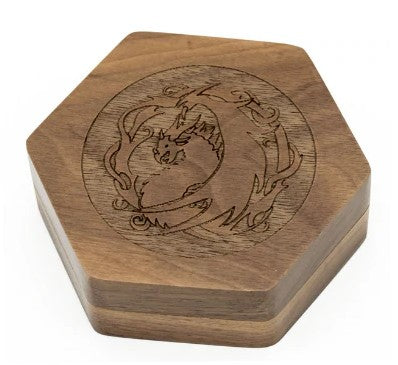 Foam Barain Wooden Dice Vault: Walnut Dragon Hexagonal