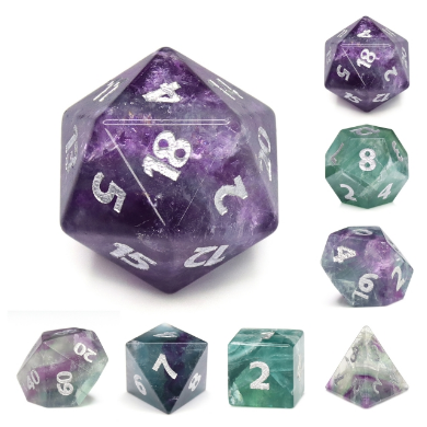 Foam Brain Fluorite - Engraved with Silver Gemstone Poly 7 Dice Set