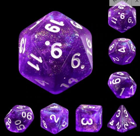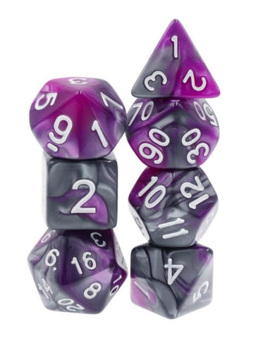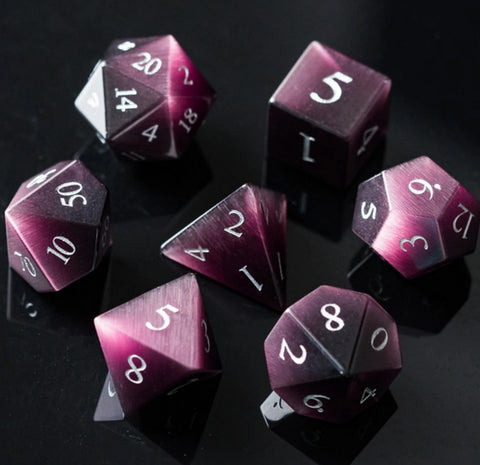Foam Brain Gemstone Poly 7 Set: Cat's Eye Purple With Silver