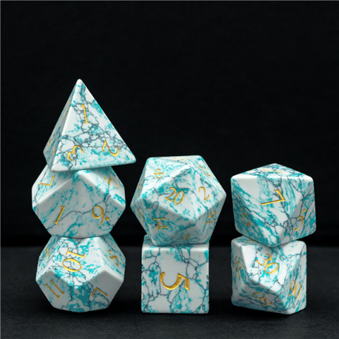 Foam Brain Marbled Turquoise - Engraved with Gold Gemstone Poly 7 Dice Set