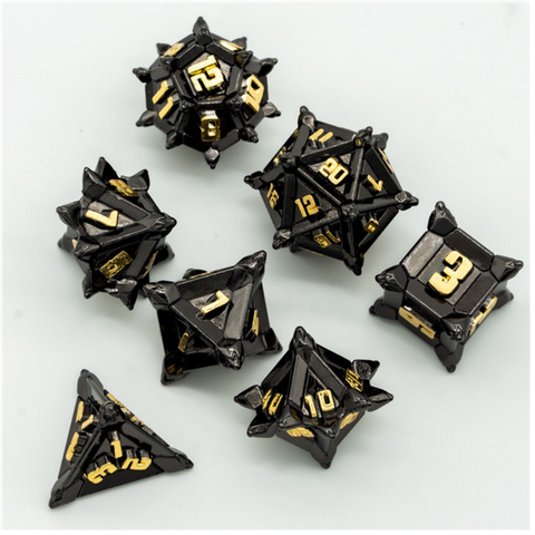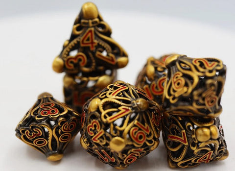 Foam Brain Mind Eater Hollow Gold Metal Poly 7 Dice Set