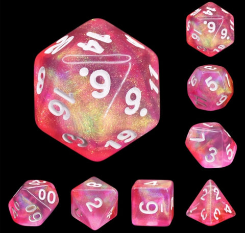 Foam Brain Pink Agate Gemstone Poly 7 Dice Set