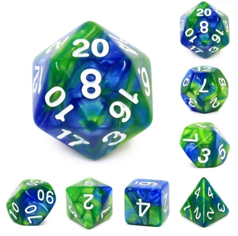 Foam Brain Poly 7 Dice Set: Green Gradient