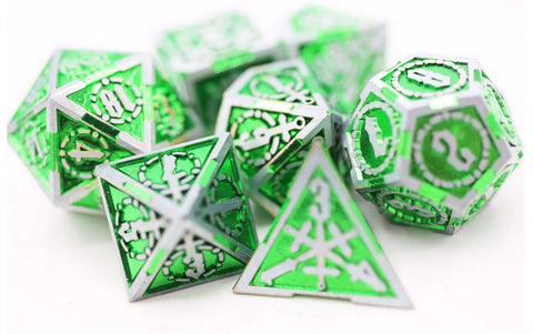 Forged Gaming Cryptic Reliquary Silver Green Metal Poly 7 Dice Set