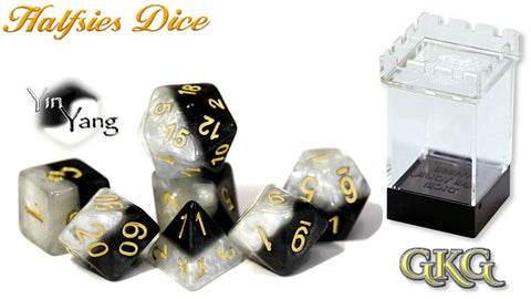 Halfsies Dice: Yin Yang - Upgraded Case (7 Polyhedral Dice Set)