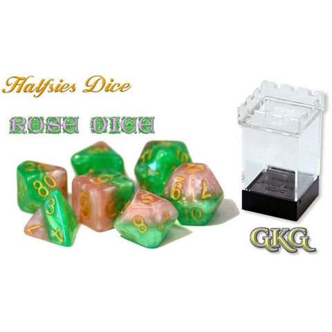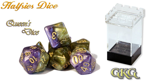 Halfsies Dice: Queen`s Dice - Upgraded Case (7 Polyhedral Dice Set)