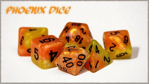 Halfsies Dice: Phoenix - Upgradede Case (7 Polyhedral Dice Set)