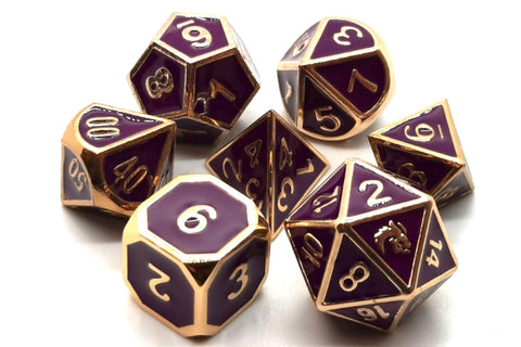 Old School Dice Elven Forged Purple with Gold Metal Poly 7 Set
