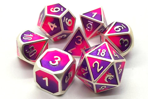Old School Dice Dragon Forged Platinum Purple and Pink Metal Poly 7 Set
