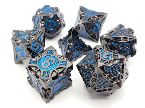 Old School Dice Halfling Forged Black Nickel with Blue Metal Poly 7 Set