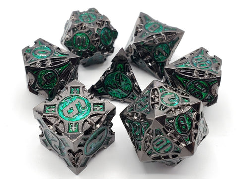 Old School Dice Gnome Forged Black Nickel with Green Metal Poly 7 Set