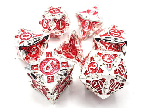 Old School Dice Halfling Forged Electric Red Metal Poly 7 Set