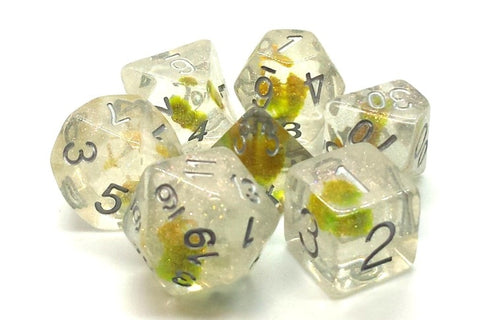 Old School Dice Infused Yellow Flower Poly 7 Set
