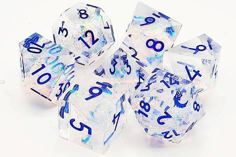 Old School Dice Sharp Edged Crystal Ice Poly 7 Set