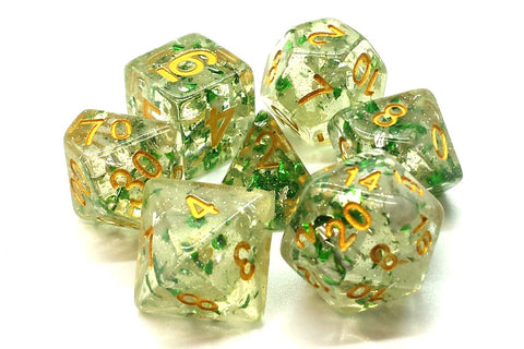 Old School Dice Vorpal - Green and Yellow Poly 7 Set
