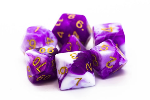 Old School Dice Vorpal Purple White Gold Poly 7 Set