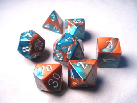 Chessex Gemini Copper and Teal With Silver Poly 7 Set