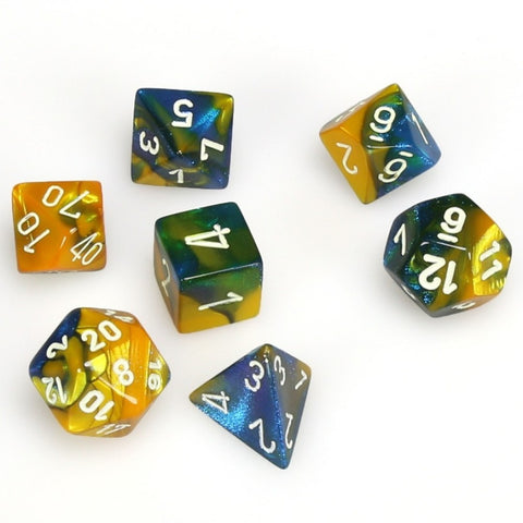Chessex Gemini Masquerade and Yellow with White Poly 7 Set