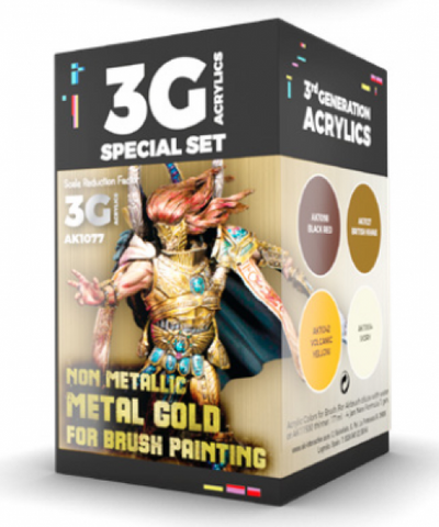AK-Interactive: 3rd Gen Acrylics - Wargame Colors Non Metallic Metal Gold Set