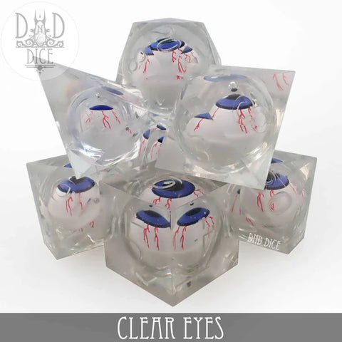 DND Dice Poly 7 Dice Set: Liquid Core Clear Eyes