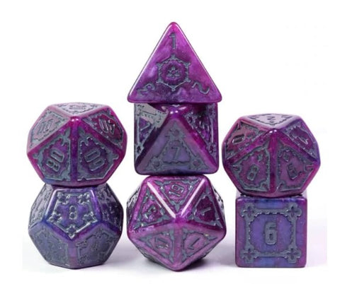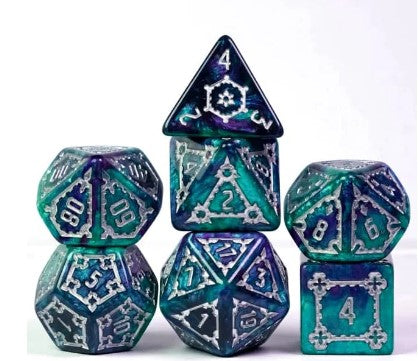 Foam Brain Hollow Seascape Silver and Purple Poly 7 Dice Set