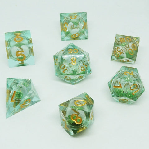 Fanroll Poly 7 Sharp Edge Dice Set: Frog Dice