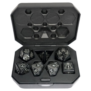 MDG Dice: Sharp-Edge Volcanic Soot Rubber Poly 7 Set