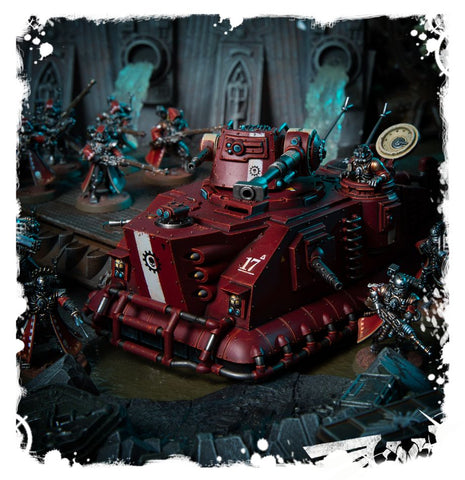 The Skorpius Disintegrator of the Adeptus Mechanicus drifts gracefully across the dunes, its anti-grav motors thrumming quietly in stark contrast to its thundering guns. As it accompanies the advancing Skitarii phalanxes, the Skorpius Disintegrator delivers punishing salvoes from its ferrumite or belleros energy cannons, while its cognis heavy stubbers and disruptor missile launcher spit death at any who would threaten the armoured vessel. In addition to its flanking pair of cognis heavy stubbers, and prow-mounted disruptor missile launcher, the Skorpius Disintegrator bears a ferrumite cannon or a voltaic belleros energy cannon. Its primary turret weapon is manned by a Servitor gunner that has been hard-wired into the weapon for optimal performance. The multipart plastic kit is comprised of 104 components. It can be assembled with a crewman set in one rear cupola, or with both hatches closed. Warhammer 40,000 rules for this vehicle can all be found in its assembly guide (included in the set).