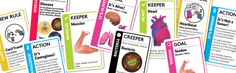Anatomy Fluxx takes players deep into the human body, and from "Bones" to "Blood Vessels", the game is packed with all the body bits that keep you ticking. Be on the lookout for Virus, Mutation, and Bacteria Creepers that can send you to your knees! The game also includes two learning rules to get your brain in gear with anatomical trivia. Anatomy Fluxx is for external use only!