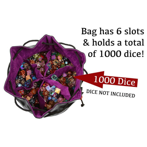 HUGE: The Pouch of the Endless Hoard holds all the dice. We ran out at 1,000 and there was still room in the 6 divided dice storage pockets