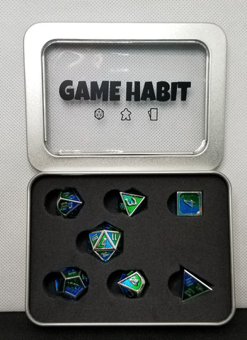 Since the Earth was the supercomputer built to generate the question for which the answer was 42, these green and blue with silver metal dice seemed to be just the ticket. Green lands and blue oceans certainly would have gotten the mice their question, right? As long as no hyperspace bypasses were required, that is.