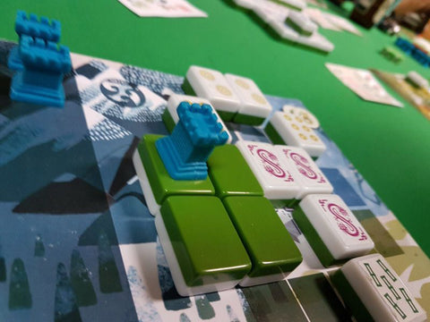 Every time you create a set of tiles of the same kind, you "consolidate" them, i.e. flip them face down to score points. When you consolidate a set, you may also build shrines on top of the consolidated tiles: Shrines allow you to score more points, but they also limit your building options. You may also take advantage of the available spirit card and its game-changing powers...but this will come at a cost! Finally, don't forget to check the dragon card in play, and to follow the building requirements to score bonus points.