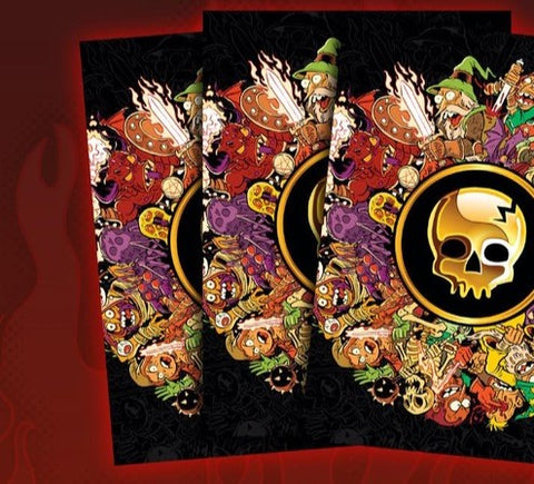 Bundle includes Epic Spell wars of the Battle Wizards: Annihilageddon 3 - Satanic Panic, 300 Card Sleeves of Doom, Diabolical Infernal Playmat and Epic Spell Wars of the Battle Wizards: Anarchy in the Arena