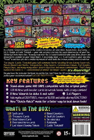 Whether you have played the original or not, this new set will provide everything you need to start blasting your opponents into tiny bits of goo. Experienced players will find new challenges and they’ll marvel at the all-new Treasures and Dead Wizard cards as well. Mix the two sets together for the ultimate carnage-fest!