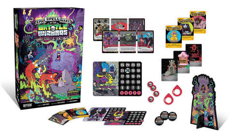 The sleeper hit has awakened! Epic Spell Wars II: Rumble at Castle Tentakill is finally here and it’s loaded with all-new ways to deliver a smoking death to all who oppose you. This stand-alone game is also 100% compatible with the original game, which allows players to turn an already epic game into an EP IC game. Epic Spell Wars continues its epic quest after airing on TableTop on Geek and Sundry! Featuring game design and all-new art from the original creative team of Cory Jones, Rob Heinsoo, and Nick Edwards.