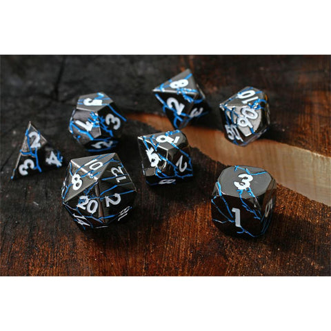 Forged Gaming Company is committed to providing the highest quality gaming accessories. Period. Our dice are no exception. Our heavy duty polyhedral dice are made of SOLID metal, yes, they are literally, Heavy. Metal. dice. This set is polished gun metal with bright tea-blue fractures breaking the surface. Whether you're rolling for the win or chucking...