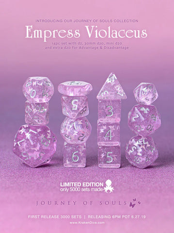 Empress Violaceus 14pc Limited Edition Dice Set inked in Silver - $22.99