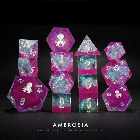 14 PIECE DICE SET INCLUDES• 1 of the following dice: d2,d4,d8,d10,d10(00-90),d12.• 4 of the following dice: d6, d20 with Kraken logo on 20