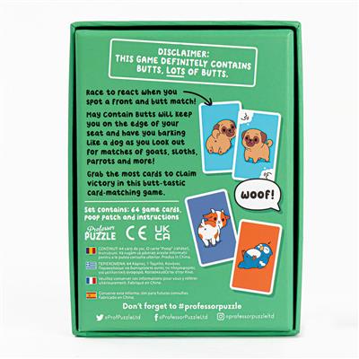 Race to react when you spot a front and butt match! May Contain Butts will keep you on the edge of your seat and have you barking like a dog as you look out for matches of goats, sloths, parrots and more! Grab the most cards to claim victory in this butt-tastic card-matching game.