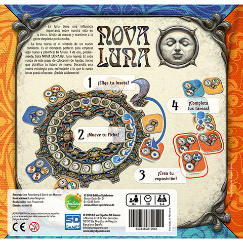 The new moon is a symbol for a new beginning, the perfect time to start something new and to plan your future — and that is what Nova Luna (lat. for new moon) is all about. In each round of this abstract tile-laying game, you have to plan your future anew, developing a new strategy to cope with what the moon wheel has to offer you.