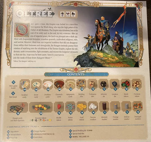 Once upon a time, the Empire was locked in a merciless war against the Witch-King, who was the high priest of the Father-of-all-Monsters. The Empire was victorious, but at the cost of its unity and, in the end, its very existence. After an era of imperial peace, the land was plunged into a dark age, filled with fragmented domains, ceaseless quarrels, malevolent religions, ruin, and sorrow. However, there was one imperial tradition that did not disappear. From within their fortresses and strongholds, the Rangers tirelessly pursue their mission of watching over the inhabitants of the former Empire, explore the wilderness, unite communities, fight monsters, and recover the Emperor’s treasures so that one day, hope may be born anew. Now it’s your turn to join the ranks of these brave Rangers! Oltréé!*