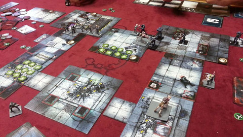 Gameplay is based around adrenaline, which is the currency that the soldier players use to perform actions. They generate adrenaline to do things such as move, attack, and perform special actions like activating an objective space. That generation also has a negative effect for them, as that adrenaline transfers to the Overseer player, who then uses it to spawn aliens, create new threats, and hurt the soldiers' chance of success during the scenario. The more actions the Special Ops players take, the more resources the Overseer player has to work with.
