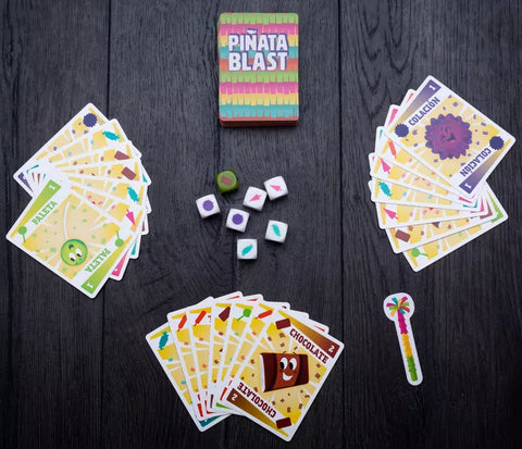 , someone drops the dice, then everyone tries to snag the dice that match their cards first, while not grabbing the rotten candy. Earn the most points to win!