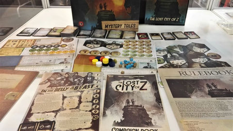 Robinson Crusoe: Mystery Tales is the second big expansion for Robinson Crusoe: Adventures on the Cursed Island. Unlike its predecessor, it not only includes a campaign (titled "The Lost City of Z") in which you follow great explorer Lieutenant Colonel Percy Fawcett, but also a full set of rules and components that can be played with the base game of Robinson Crusoe, along with two standalone scenarios.