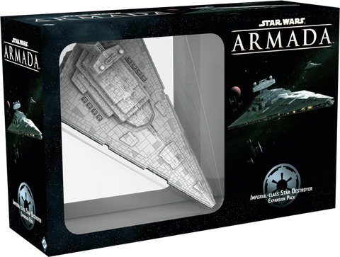 TheImperial-class Star Destroyer Expansion Pack brings this behemoth battleship to your games ofStar Wars: Armada with one pre-painted miniature, two ship cards, three command dials, eighteen upgrades, and all requisite tokens. Additionally, its upgrades allow you to snare your foes with a tractor beam and fly your fleet to battle under the command of Darth Vader.