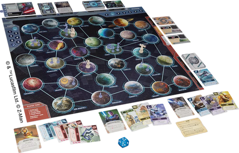 Players must work together to confront the onslaught of droids by moving into their spaces and engaging them in combat, utilizing dice and squad cards to deal damage and push back the threat. In between battles, players move from planet to planet, battling more droids, crushing blockades, completing missions to turn the tide of war, and facing off against iconic villains.