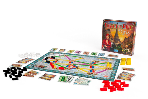 Ticket To Ride: Paris, part of the "Cities" line ofTicket to Ridegames, has gameplay similar to the original game, but with a playing time of only fifteen minutes. On a turn, you either collect transportation cards, spend these cards to claim a route on the game board, or draw tickets that show two locations you need to connect with routes.